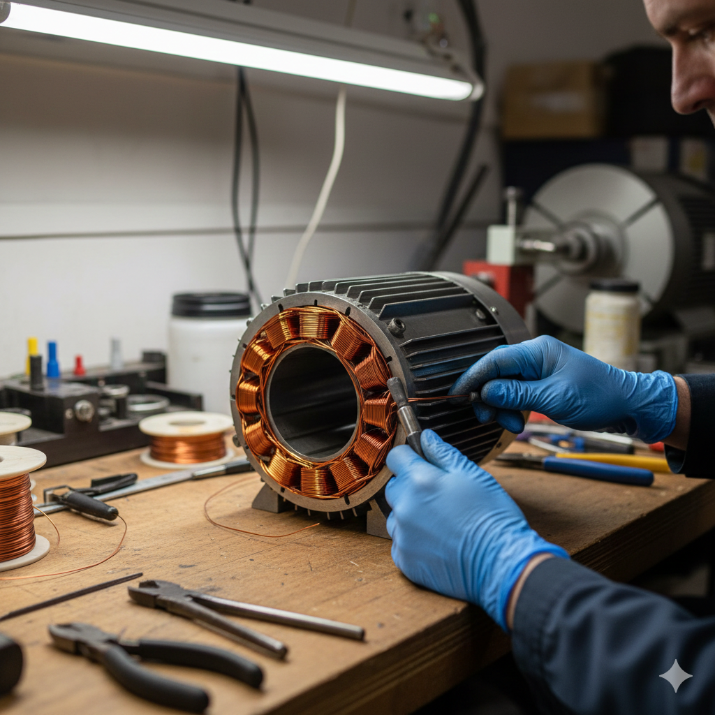 Megoldás: A gyári paraméterek alapján pontos menetszám-számítás és kézi újratekercselés.